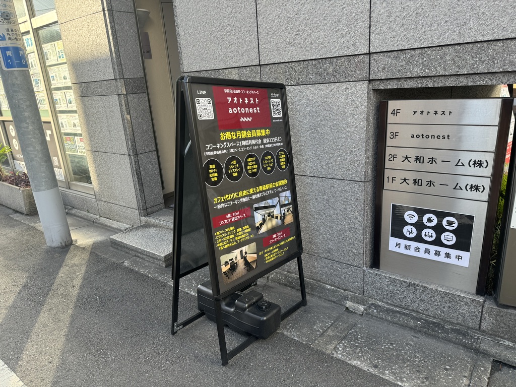アオトネストは駅の目の前、改札を出てから徒歩1分以内の立地にある青砥駅前のスペースです。