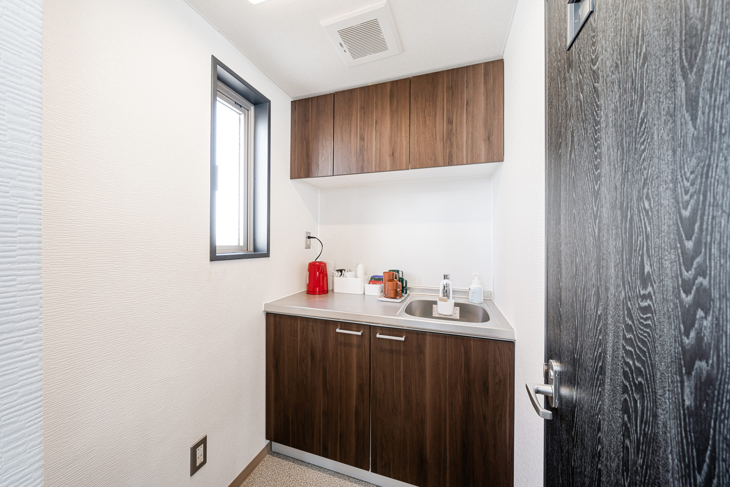 アオトネストには120cmの幅広ビジネスデスク、アンバーサポートの高機能チェア、高速WiFi、十分な数の電源コンセント、空調設備、各種コーヒーマシン、冷蔵庫、電子レンジ、トイレ、流し台などオフィスとして必要なアイテムはフロア内に一通り揃っています。