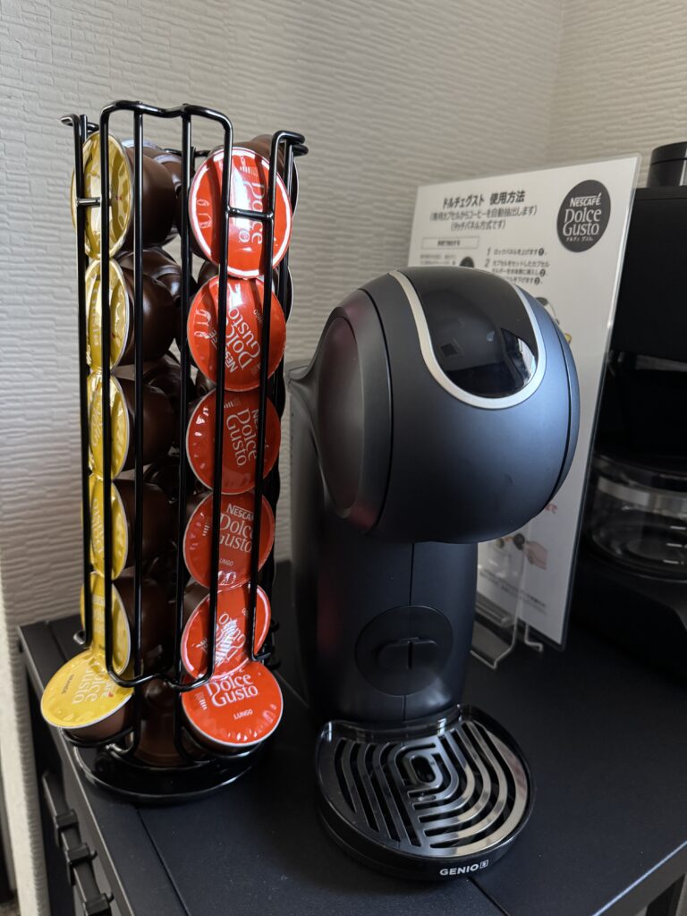 コーヒー好きな方に満足いただけるようにカフェグストと豆から挽く全自動のコーヒーメーカーを備えたCOFFEE BARコーナーを設置しました。カフェグストは湯量を少なくするとエスプレッソ感が味わえます。挽きたての全自動コーヒーも美味しいですよ。カフェの代わりにアオトネストをご利用ください